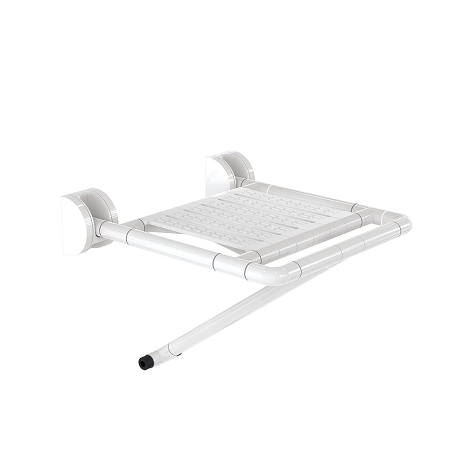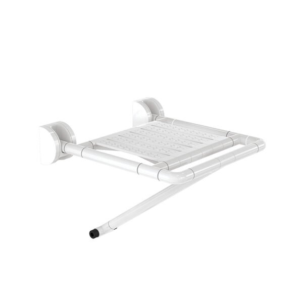 כסא מקלחת מתקפל לקיר עם רגל תומכת ABS לבן עם שלדת נירוסטה