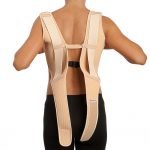 Two bands composed of a breathable elastic foam fabric allow a perfect fit to the trunk. The orthosis provides adequate control of the thoracic area and shoulder girdle due to its wraparound circumferential design. Its cotton inner layer makes it very comfortable to wear and both bands are joined by an elastic that facilitates fitting. It has 2 posterior crossover straps that, when tightened, help to keep the spine correctly aligned in different postures (standing or sitting).