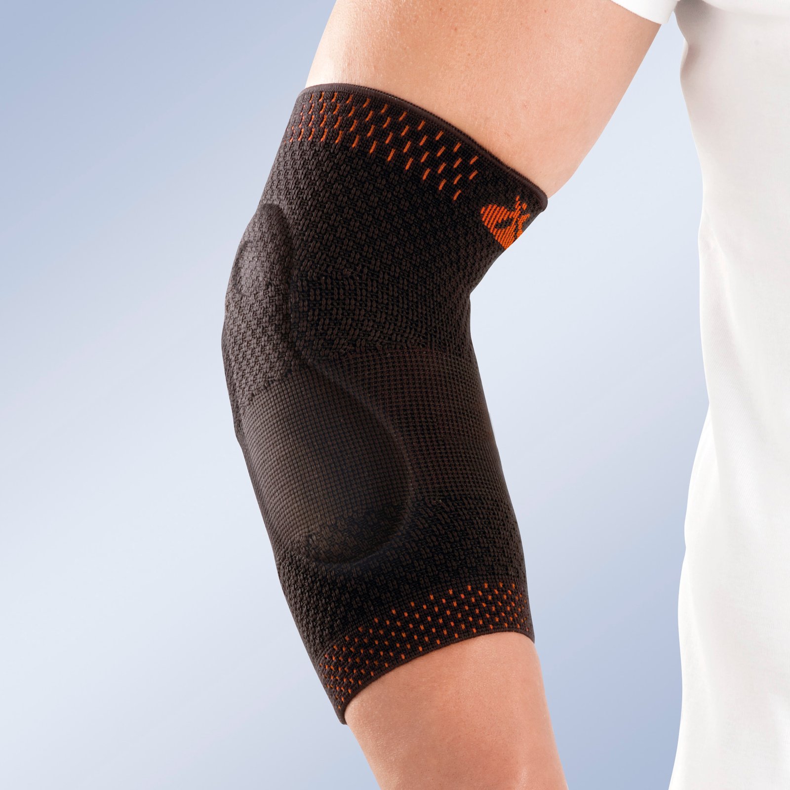 Developed in breathable elastic woven fabric using flat weaving, it incorporates two anatomicallyshaped Viscolastic pads which redistribute the compression on the epicondyle and epitrochlea.