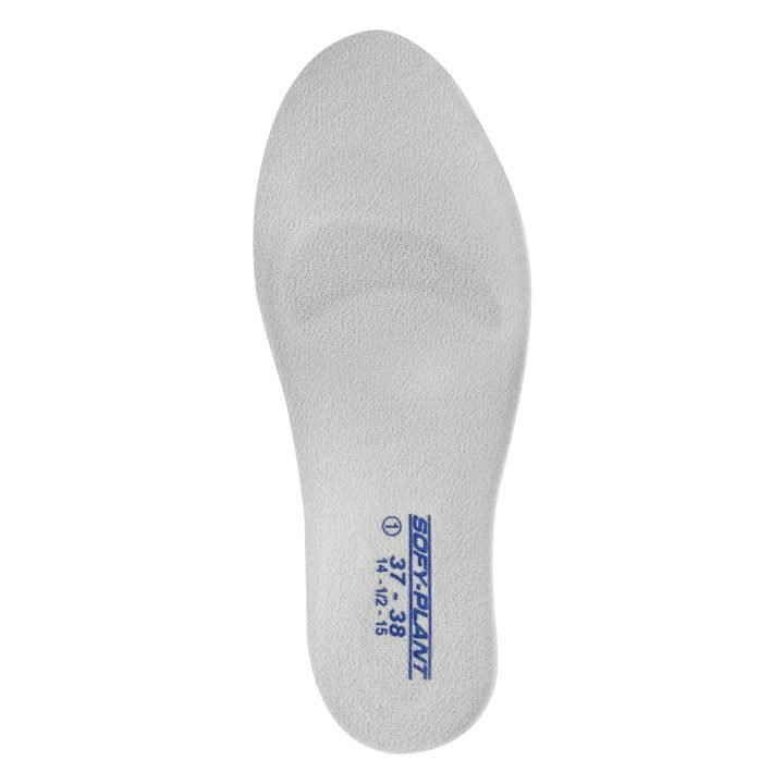 Insoles made with viscoelastic silicone with metatarsal and calcaneus supports in different density and bridge. Lined with hypoallergenic fabric in polyester that prevents bacterial growth and is easily washable.