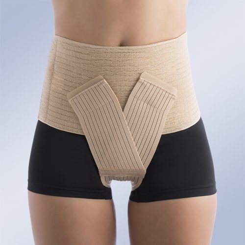 A lumbosacral back brace in multi-band material with two cross-bands.Two elastic crossover tensing bands in the back for easy fitting and adjustment