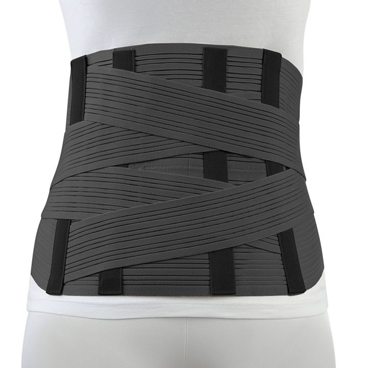 A semi-rigid lumbosacral back brace in multi-band material with two cross-bands. This material offers breathability, softness and comfort. Two elastic crossover tensing bands in the back for easy fitting and adjustment in the front to the user’s needs.