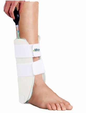 מייצב פלסטיק הבנוי בצורה אנטומית ע"פ קווי המתאר של הקרסול, רצועות היקפיות להתאמה קלה.