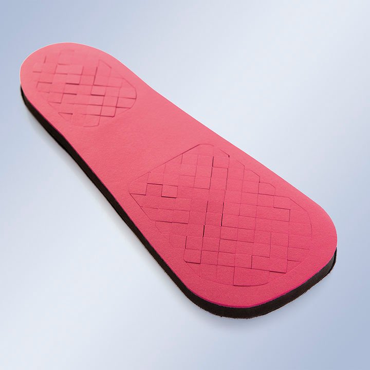 Composed of a velour base with a Velcro strip onto which is attached an insole consisting of hexagonal urethane (EVA) cells in 10 mm-thick slow-memory material, whose function is to relieve and reduce pressure areas, and a PORON lining that provides flexibility and the ability to absorb loads and impacts.