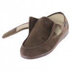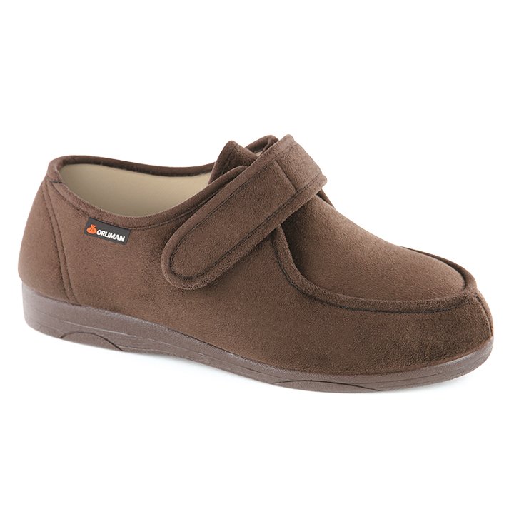 Completely sealed instep. Removable insole that allows the use of an orthopaedic insole. Stylish imitation nubuck leather. Water resistant. Slightly elastic outer fabric for better adaptation to toe deformities.