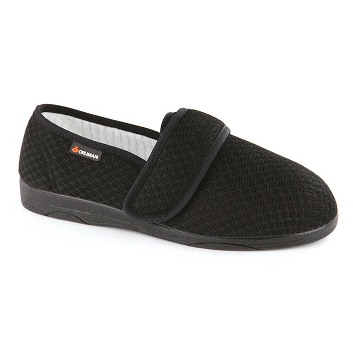 Very comfortable shoe with adjustable closure system for a perfect fit to the size of the foot. Seamless forefoot, ideal for diabetic feet. Removable insole that allows the use of an orthopaedic insole. Honeycomb fabric for optimum breathability and excellent support of the foot. Water resistant. Slightly elastic outer fabric for better adaptation to toe deformities.